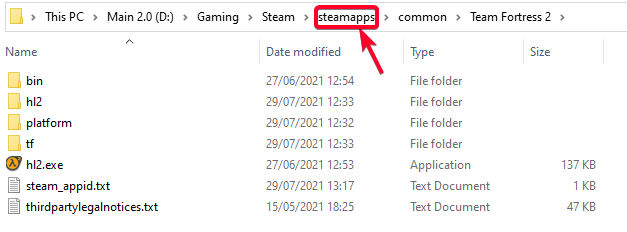 - Now that you are in the main TF2 file location, you need to navigate to the 'steamapps' file location.