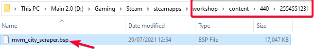 - Now that you're inside of the steamapps folder, navigate to 'workshop > content > 440' and open the relevant content folder for your map.