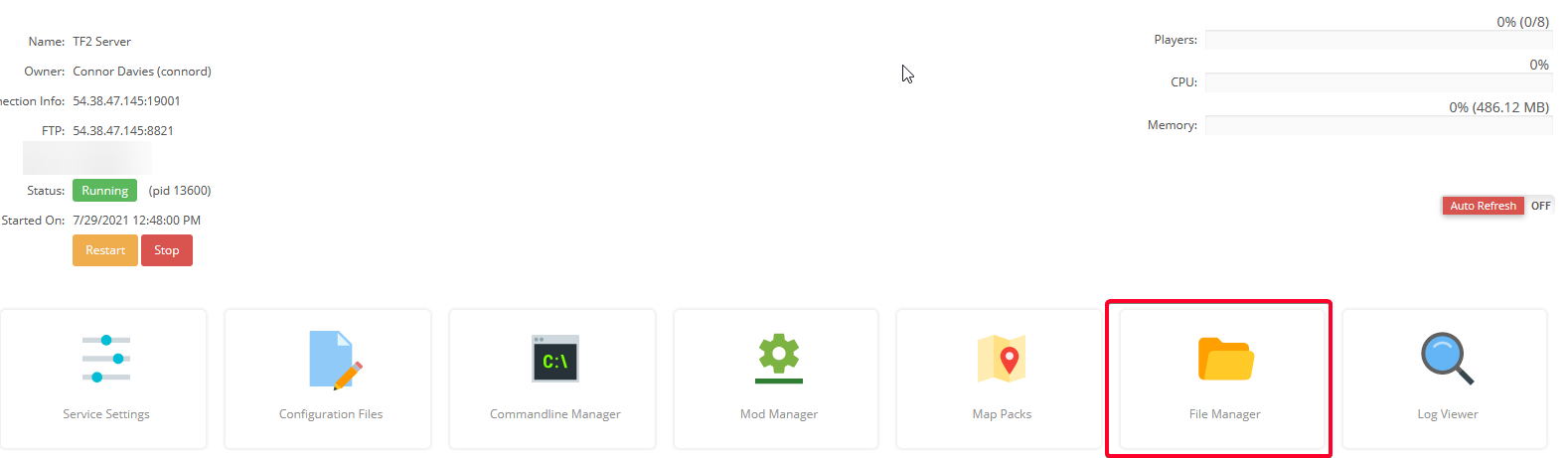 - Navigate to your PingPefect TF2 gamepanel (your server control panel) and navigate into the 'File Manager'