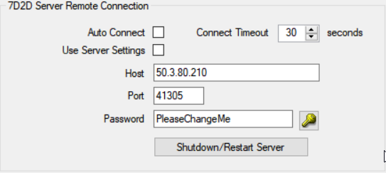 It will look something like this: - Press the "Connect" button (the lightning strike symbol) - RAT Server Manager will then connect to your server.