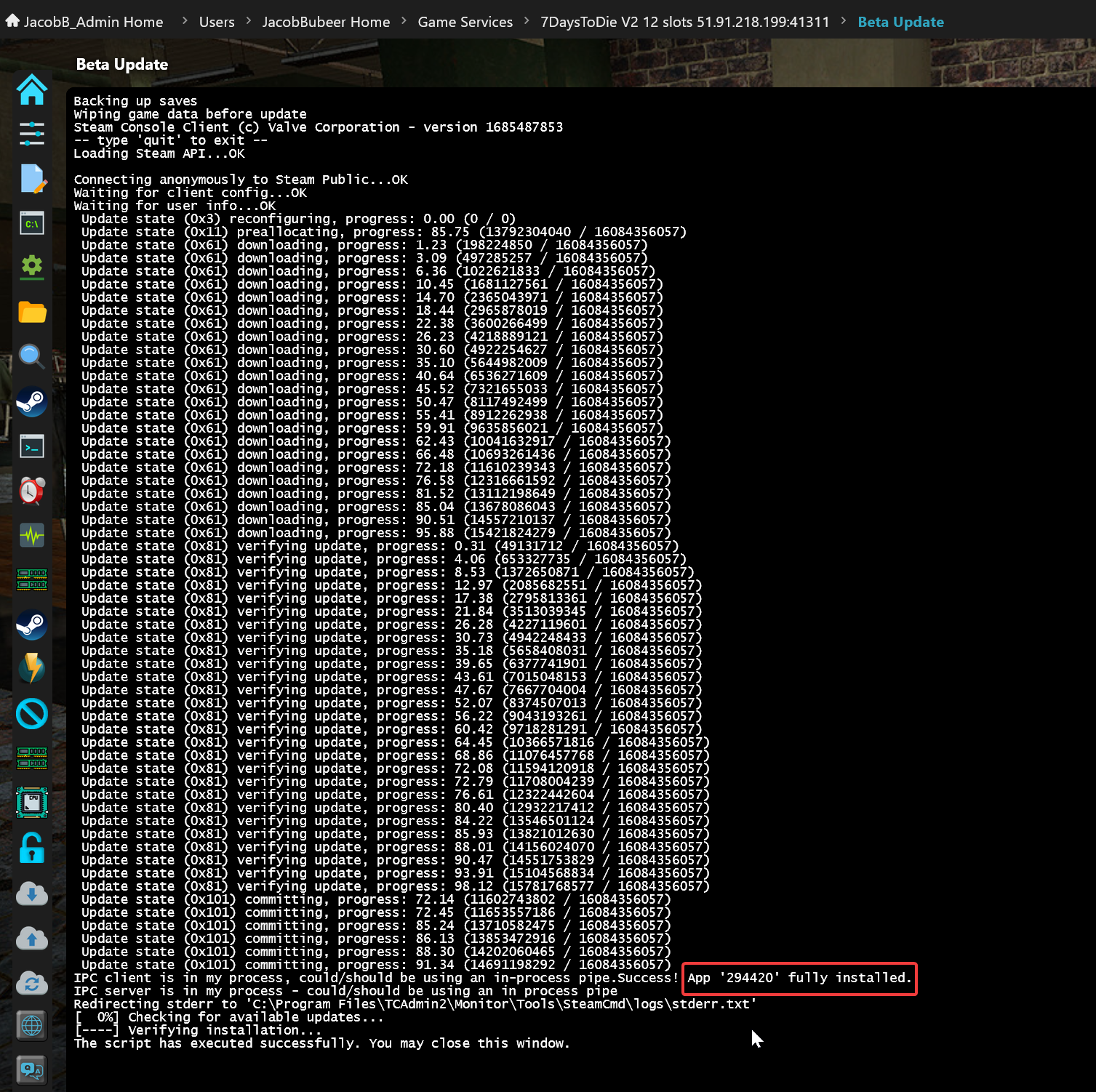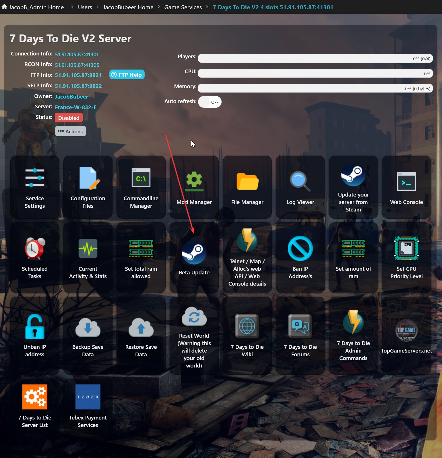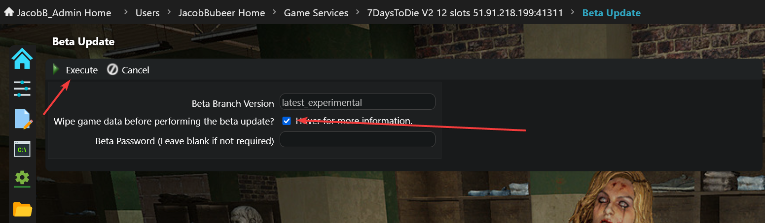 - Make sure the "Wipe game data before performing the beta update?" tick-box is ticked.
