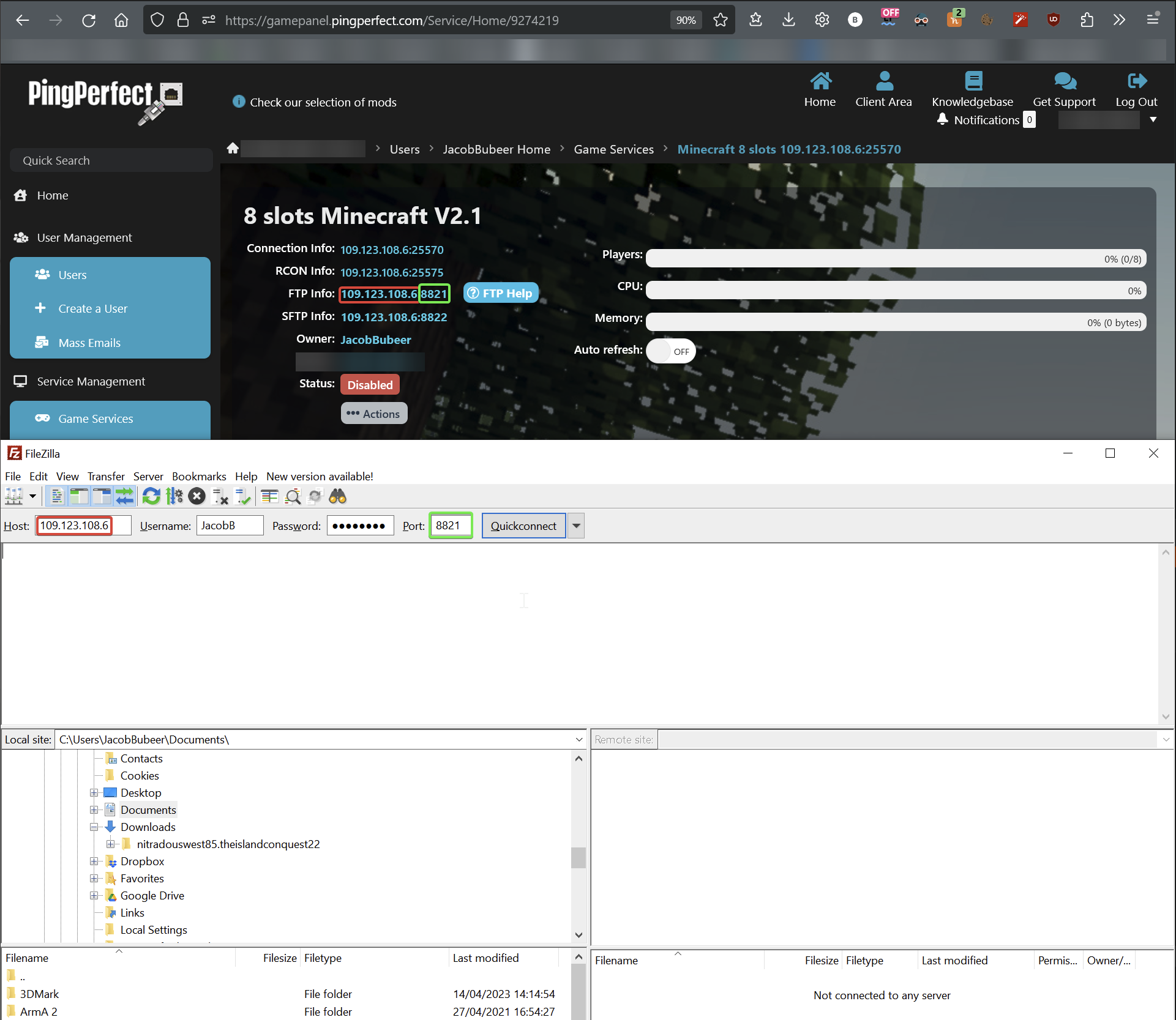 Host: sftp:// + IP of your game server - For example, sftp://174.31.31.31