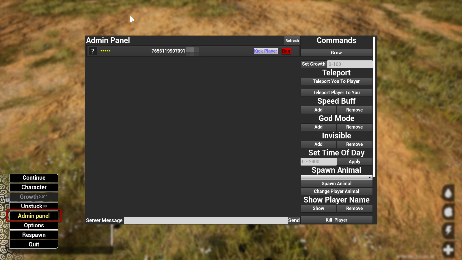 - Enter the server, press the ESC key on your keyboard and click Admin Panel.