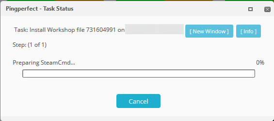 A new window will appear displaying the status of the installation process, once this is complete it will automatically close and return you back to the Steam Workshop page. - Now you have your first mod installed, you will need to enable it on your server. This can be done by going into the Configuration Files section of the game panel and then clicking the Configuration Editor button next to the GameUserSettings.ini.