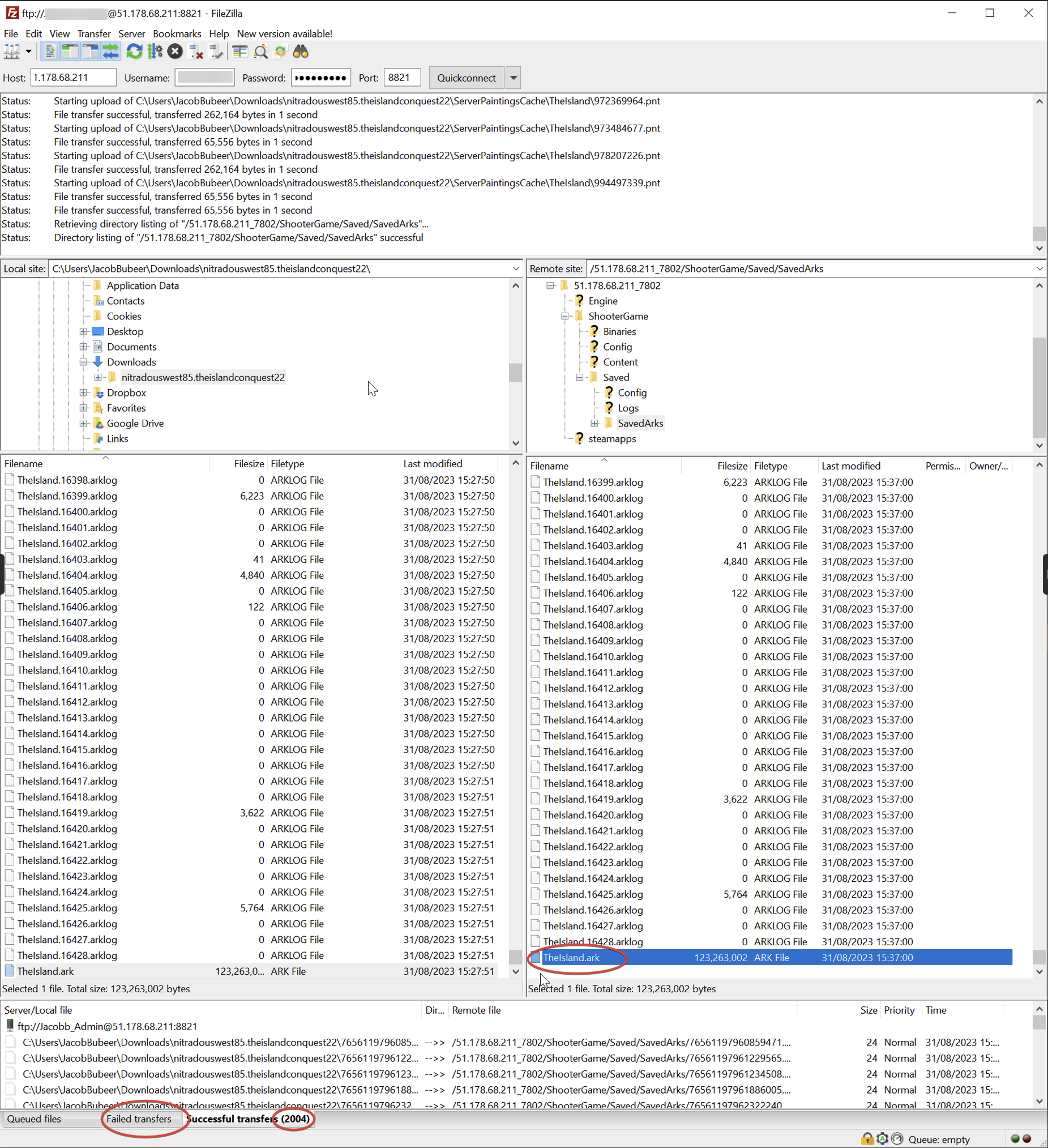 Note: If failed transfers does have a number, then reperform the process until all files are present on the server (right-hand window).