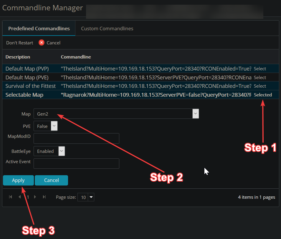 - Press the blue "Apply" button, the server will be automatically restarted and load the Genesis 2 map.