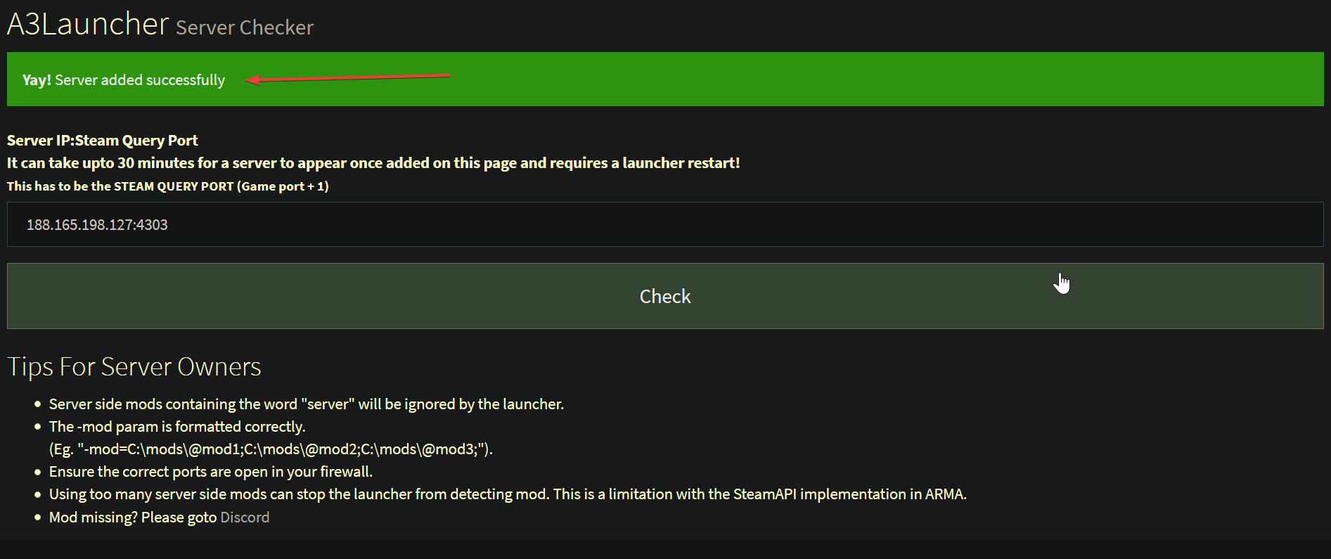 - Your server will now be joinable via the A3Launcher making connecting a lot easier for players (as it loads and manages the mods for them)