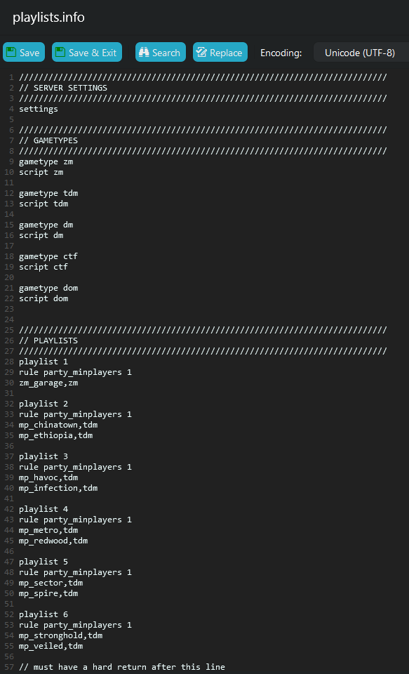 Under the playlists section add the map name and game mode (it should look like the below)zm_garage,zm