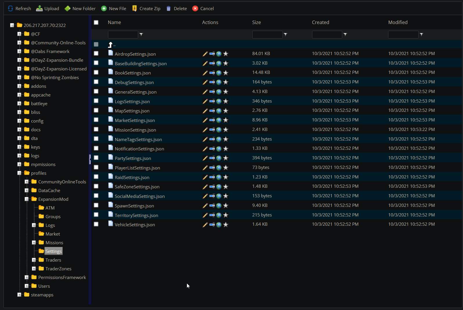 Click "File Manager" then click the folders until you have navigated to profiles\ExpansionMod\Settings