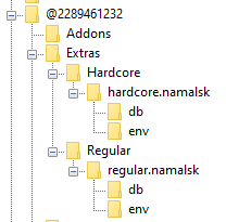 Once inside of this folder you will then need to navigate into either the Hardcore or Regular folder (this refers to the difficulty), inside of these folders you will find a folder named '<difficulty>.namalsk', for example 'hardcore.namalsk'.