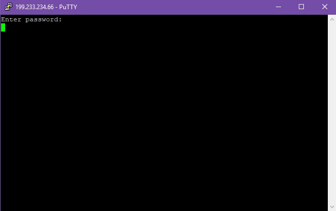 Once you see the window below enter your password (putty will always reject the first password entry so when it does just enter it again)