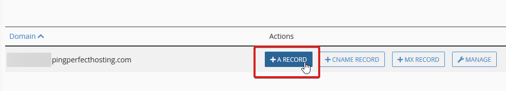 Once done you can click "Add an A Record" to apply the changes - Click "Manage"