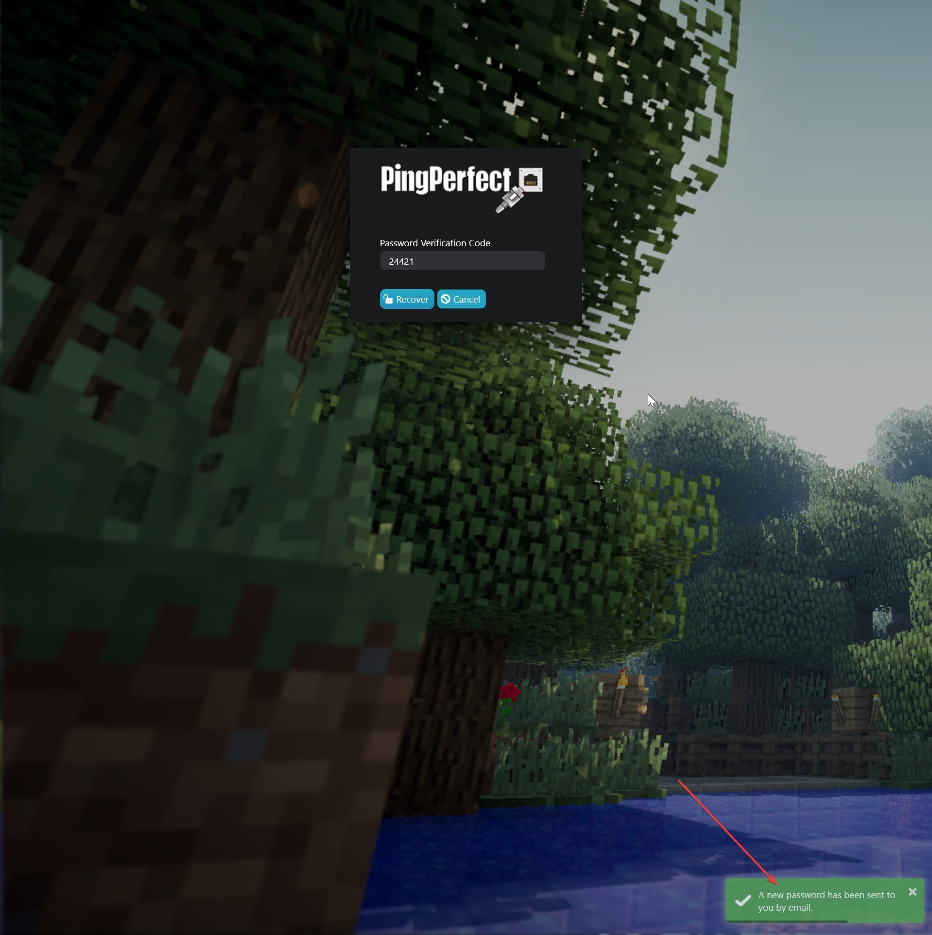 - You will be emailed your new gamepanel password, a prompt will show on screen to confirm the new password has been sent.