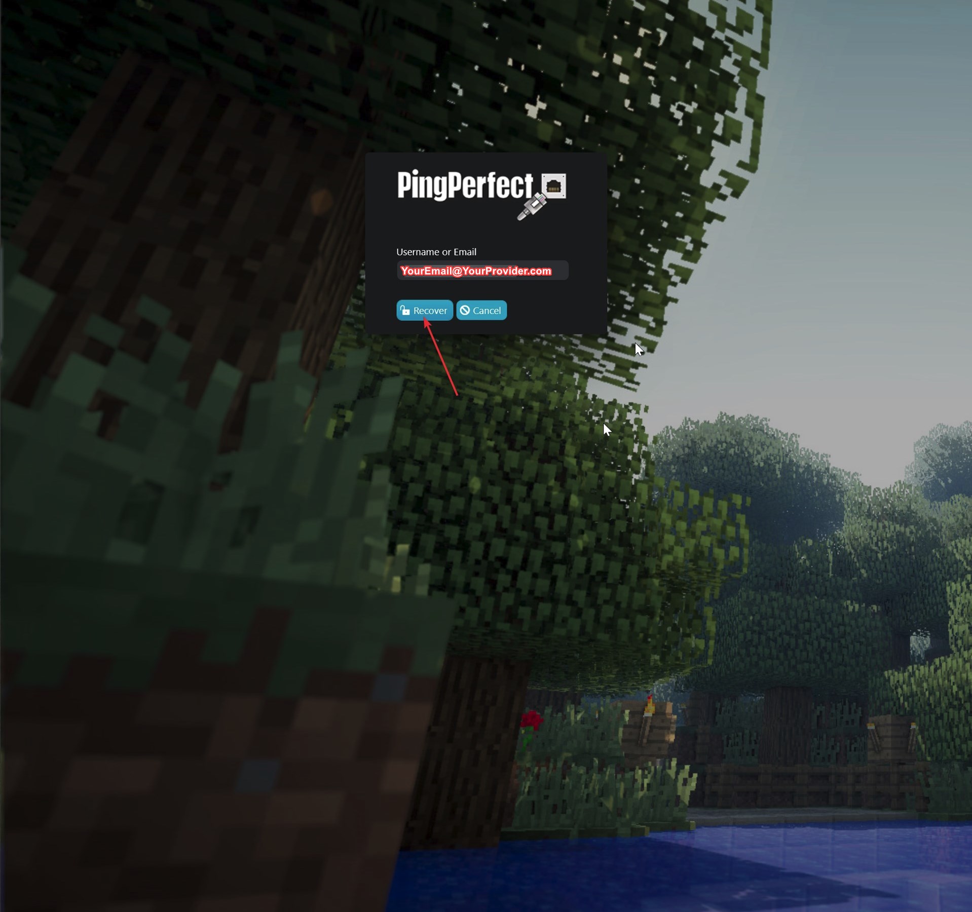 - Open this link in your web browser: https://gamepanel.pingperfect.com/Login/PasswordRecovery