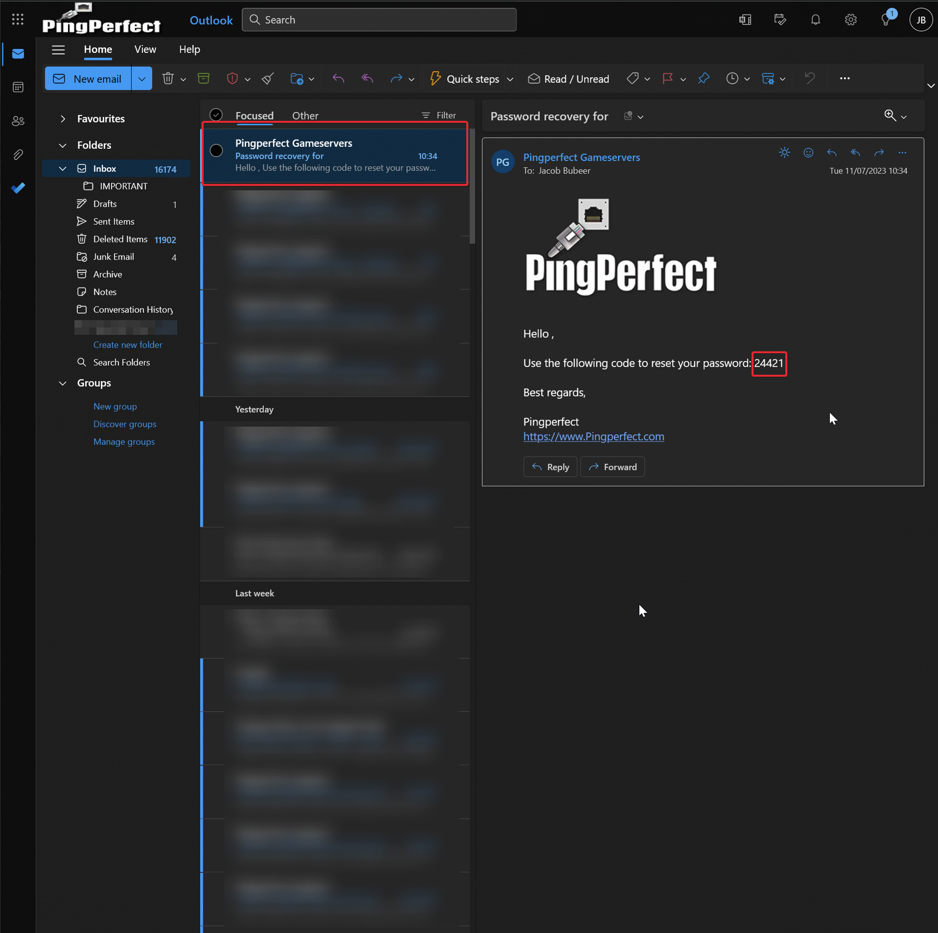 If you don't see it in your inbox, check your "Junk" and "Spam" folders! - Type in the password reset code, as shown below, on the web-page from step 4. Then click "Recover"