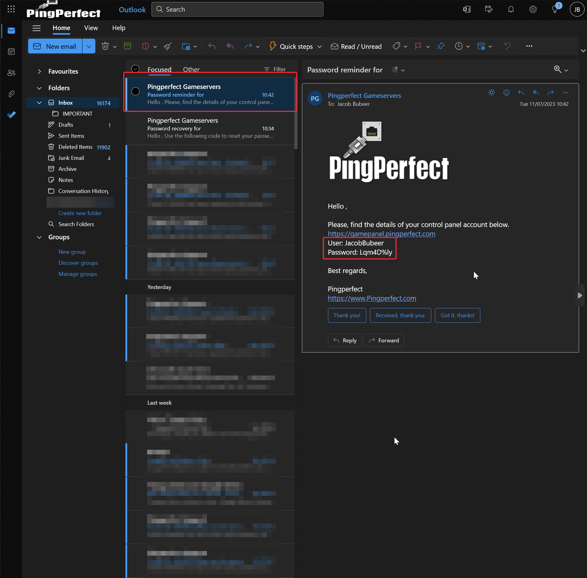 - Check your email to find the email containing your new gamepanel password.