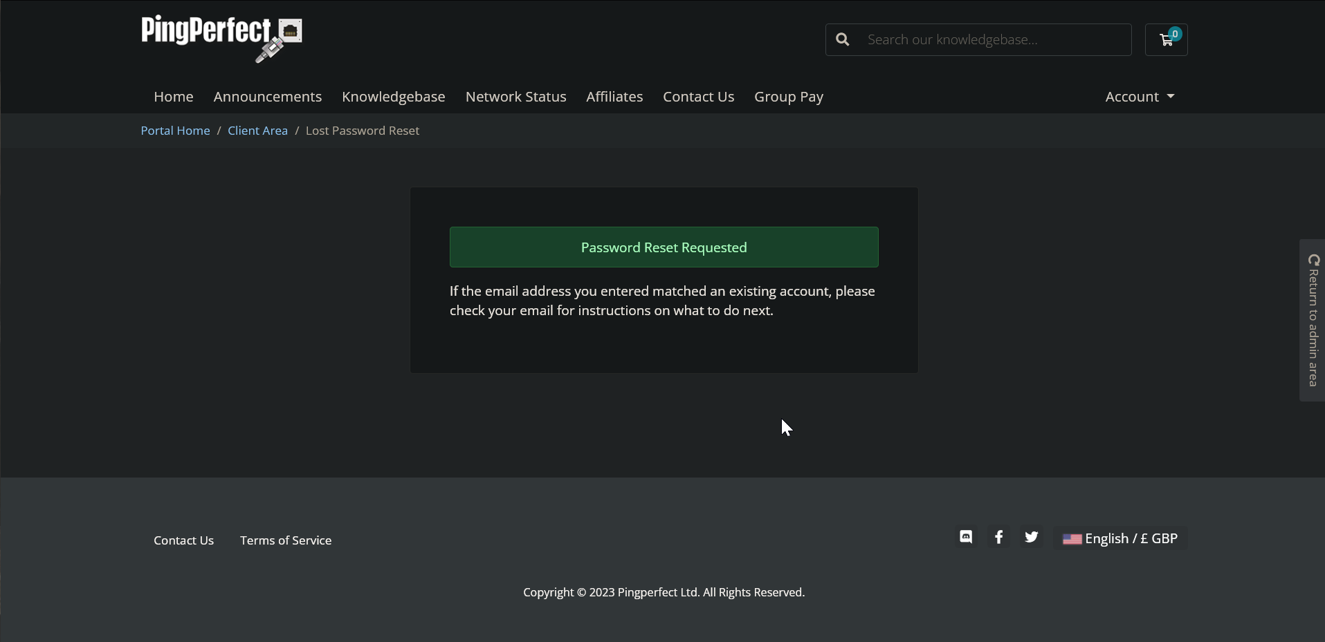 Navigate to: https://pingperfect.com/index.php/password/reset