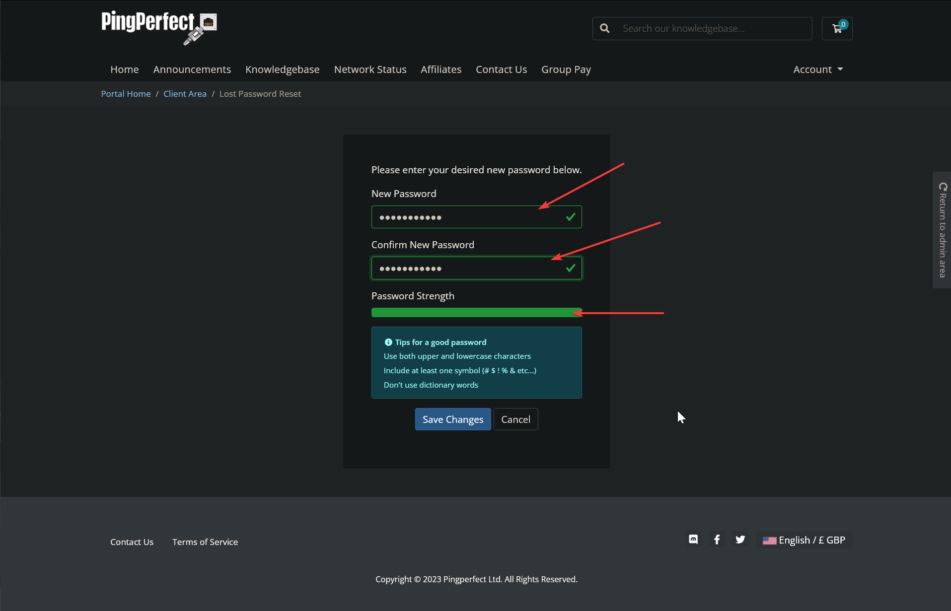 Click "Save Changes" and then click "Click here" or follow this link to sign in: https://pingperfect.com/clientarea.php