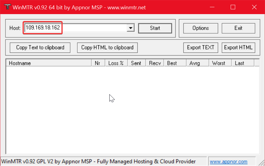 - Furthermore, please provide your own public IP address (which you can find by going to Google and typing "what's my IP"), so that we can perform an MTR to your IP from the server, as the routes will be different and need to be investigated as well to determine the source of the packet loss.