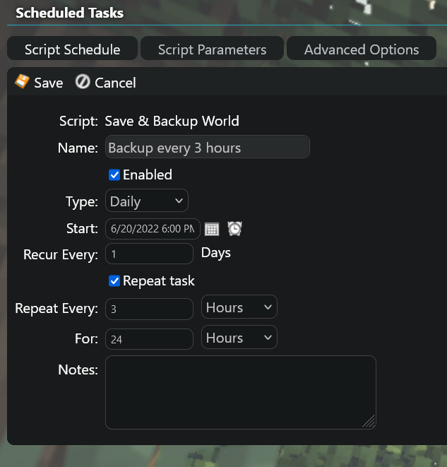 - Create a new scheduled task and pick the "Backup Save Data" or "Backup World" option.