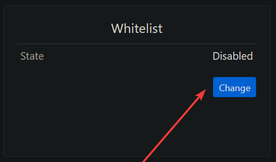 - Press "Change" under "Status", then tick the box and press "Save" - this enables the whitelist.