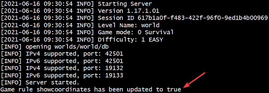 This guide covers how to enable coordinates on your server. This is incredibly useful for players as it provides an easy way to remember where important locations can be found, such as their base, a cave, or a dungeon.