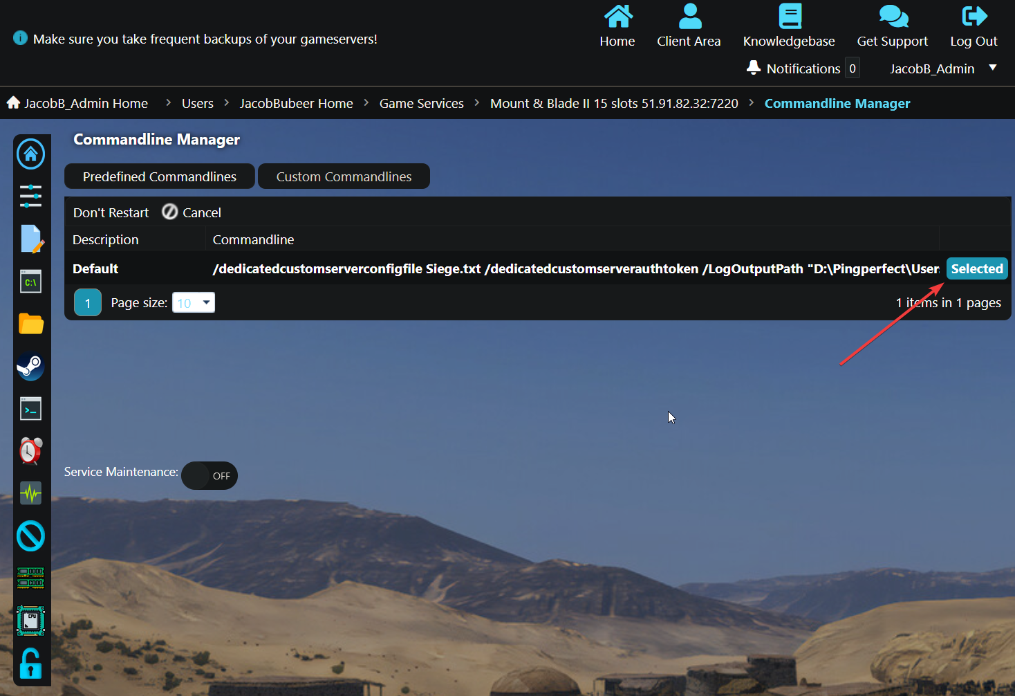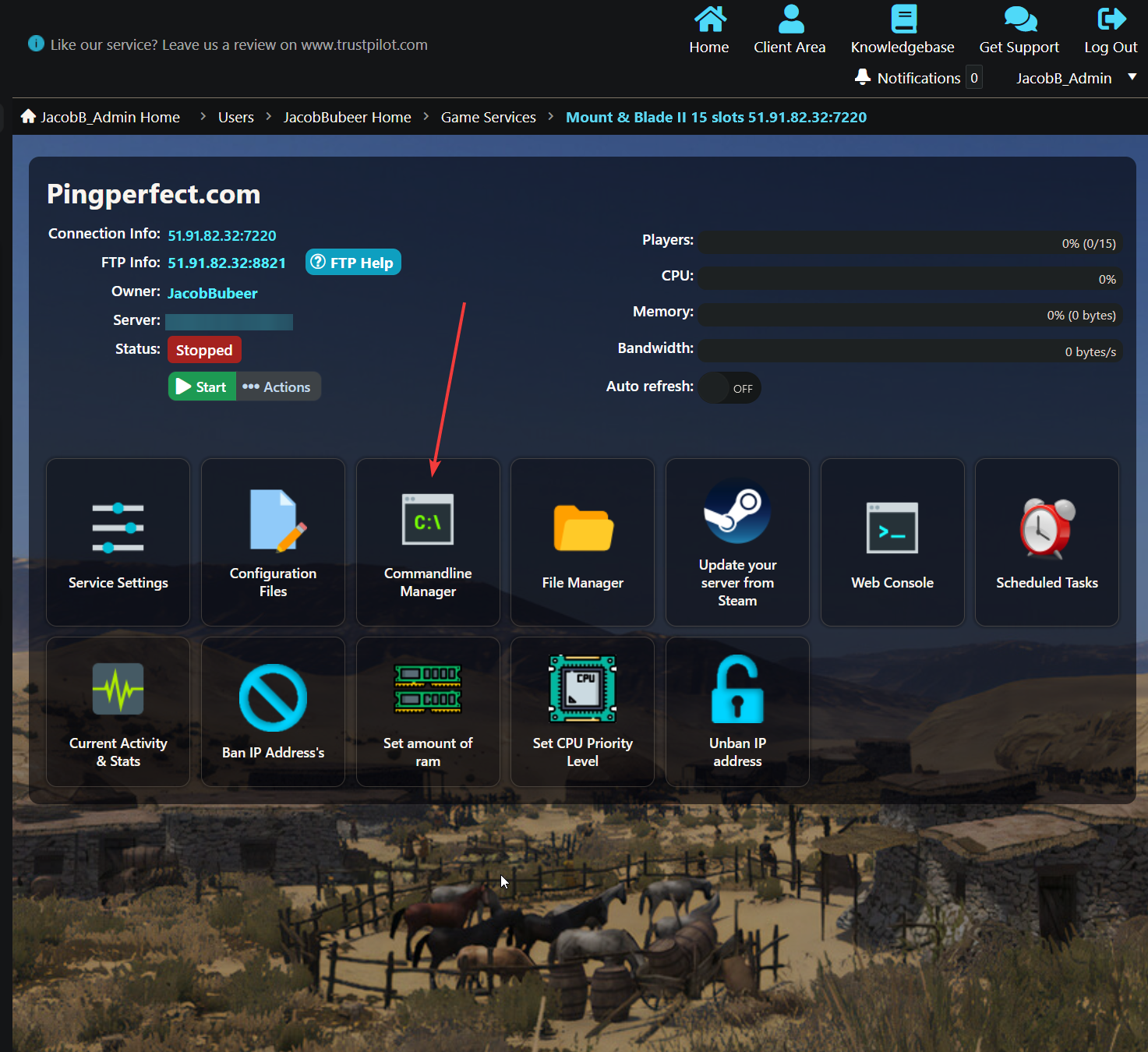 - Click "Command line Manager" in your gamepanel.