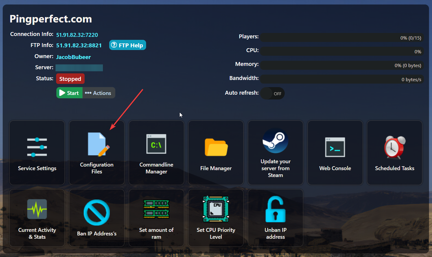 - Open the "Configuration Files" section from your game panel.