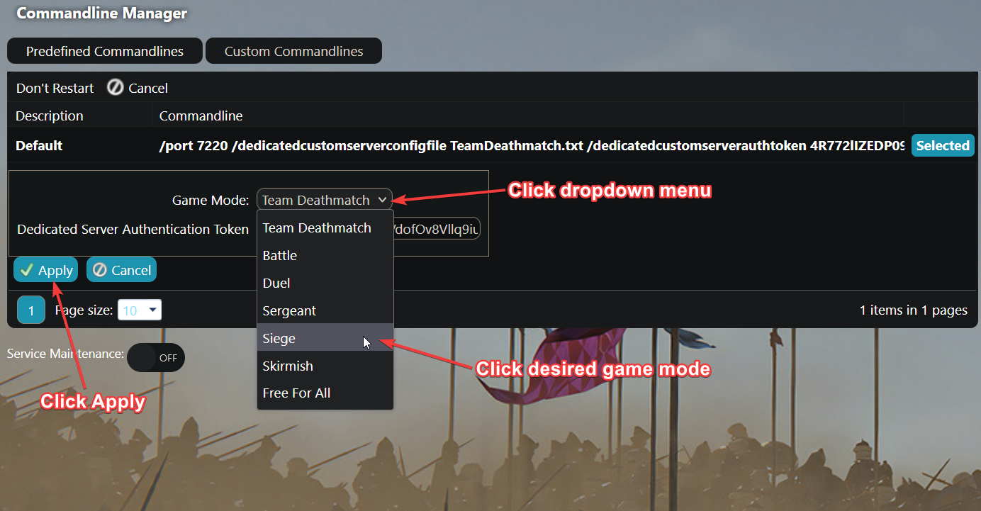 - Click the dropdown menu, then click the desired gamemode and finally press apply.