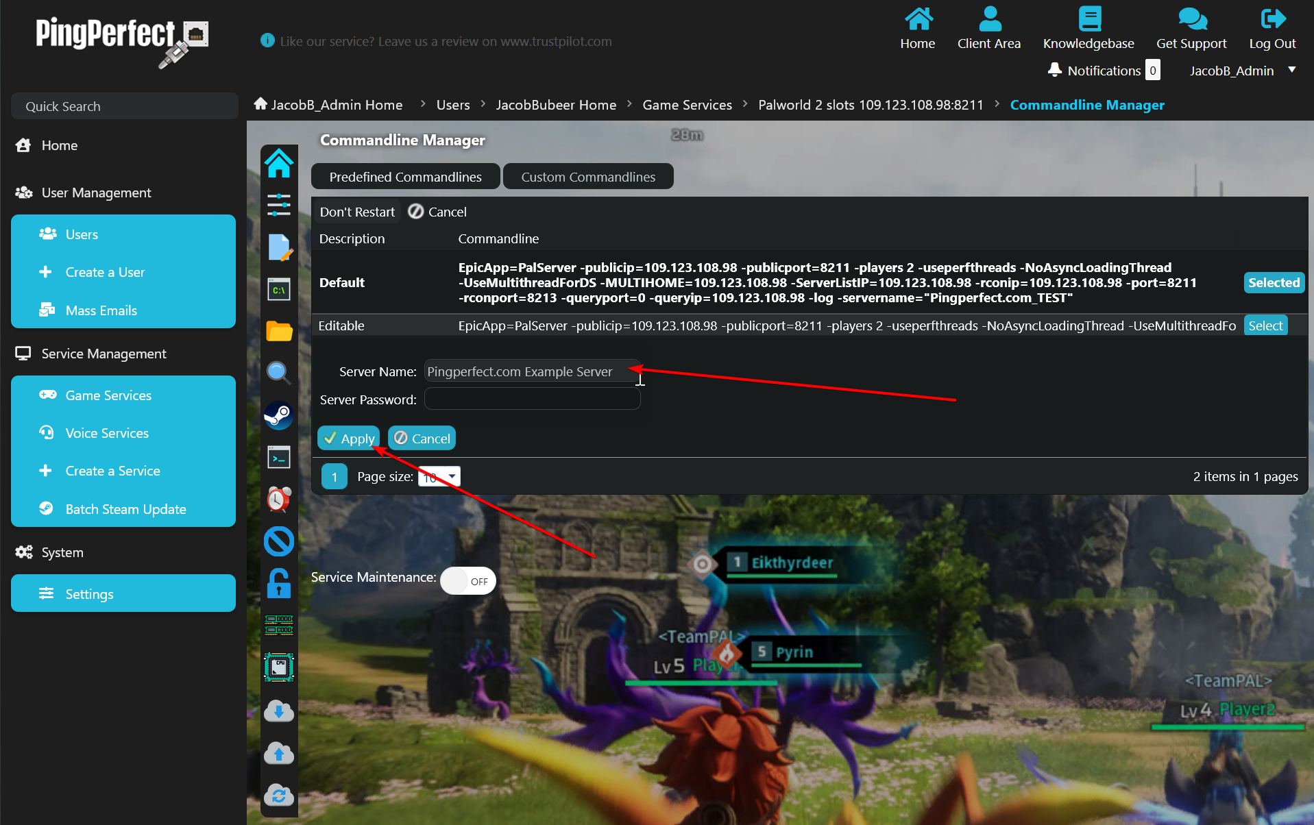 - In the "Server Name:" text field, type your desired server name and click "apply".