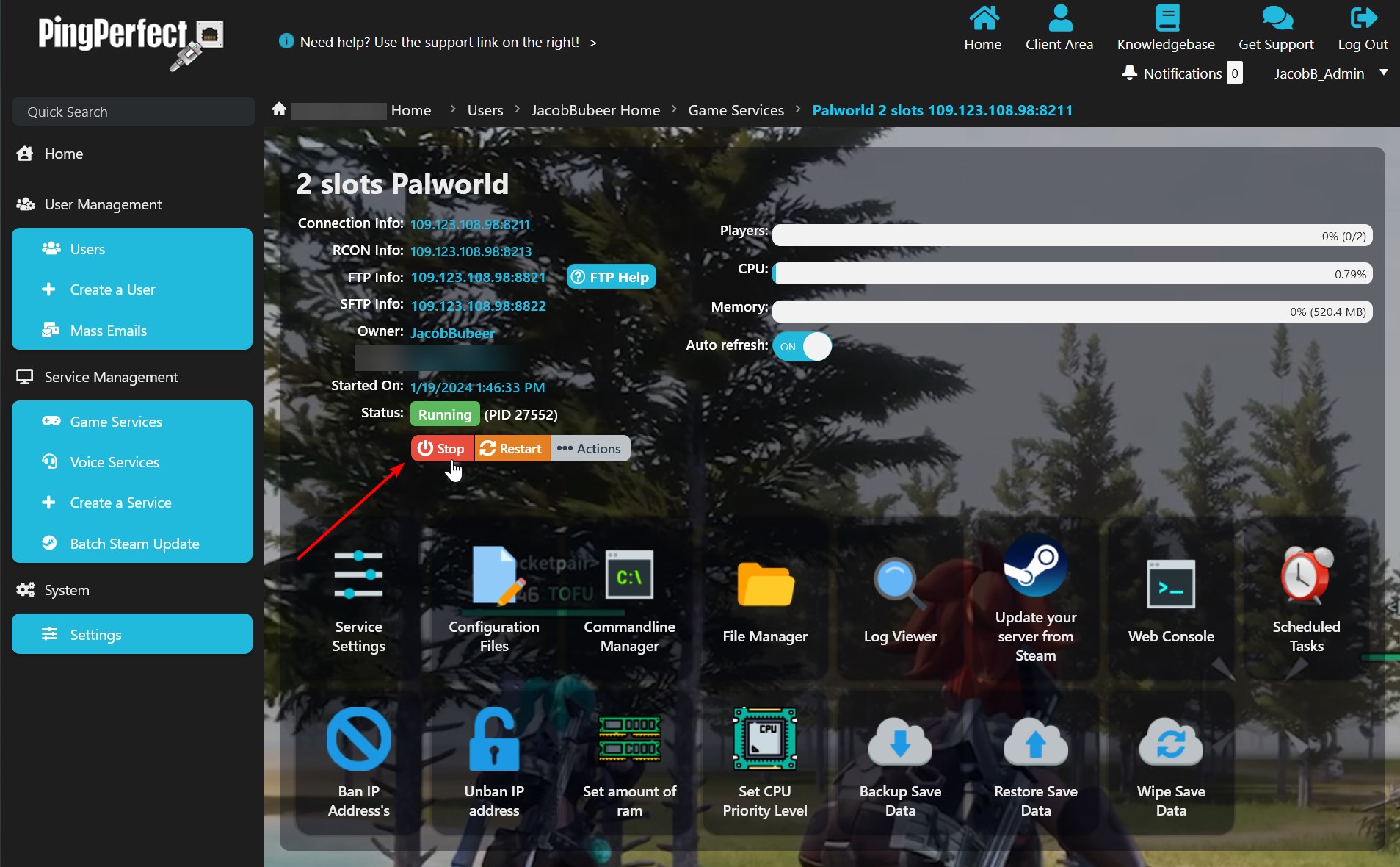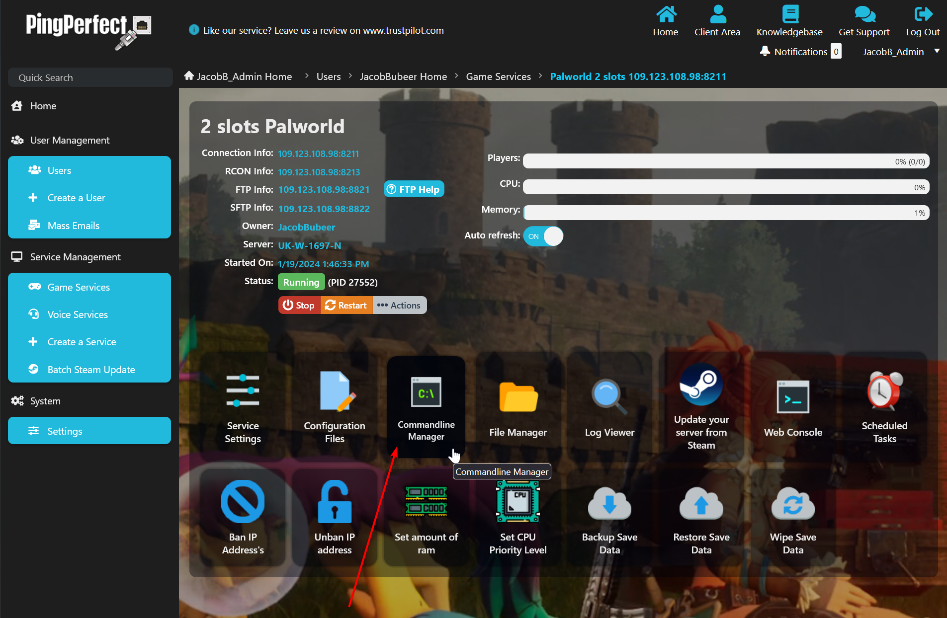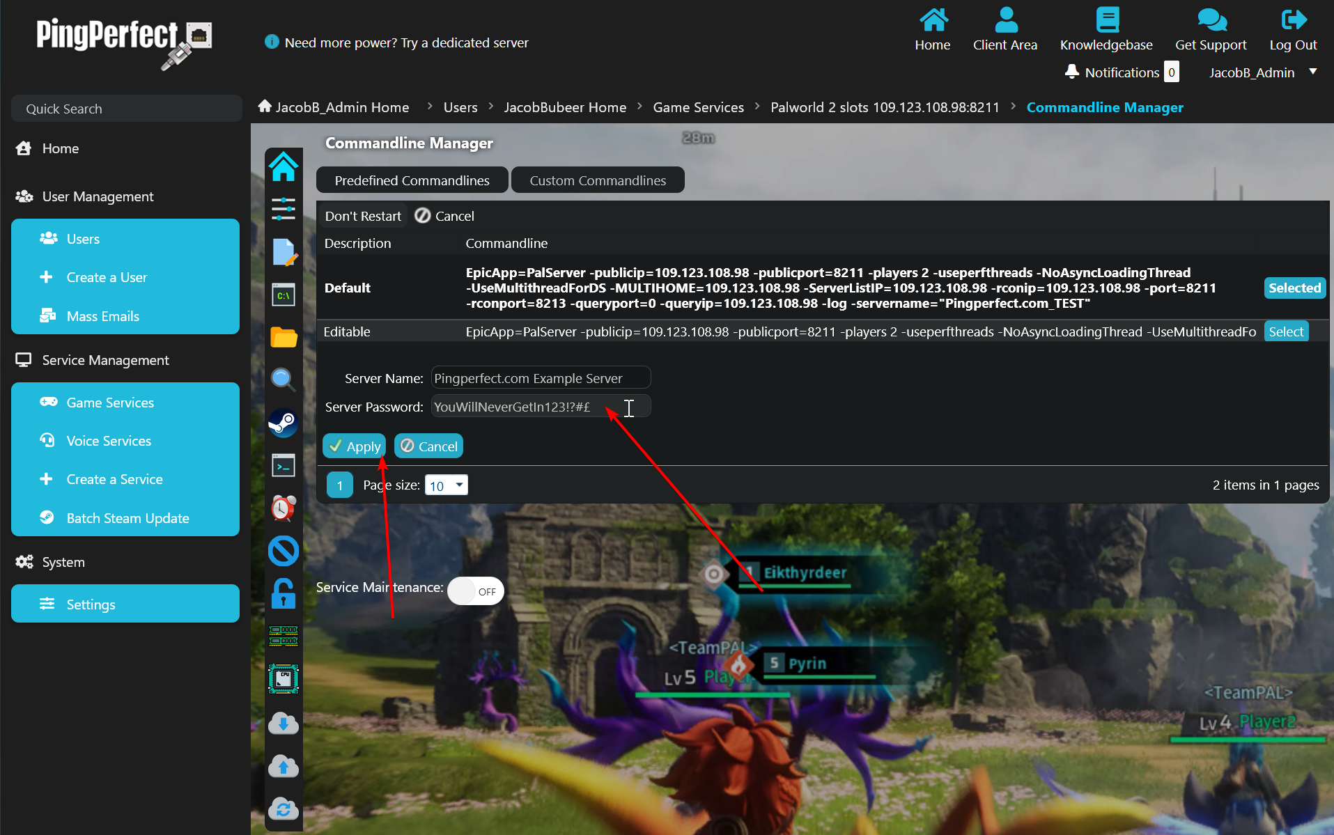 - In the "Server Password:" text field, type your desired server password and click "apply".