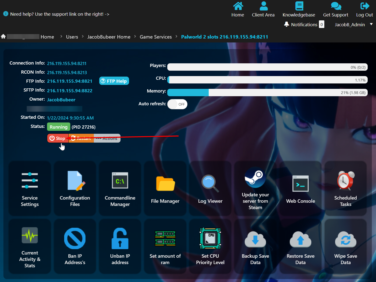 - Type the service's Admin Password in the "RCON Password" box.
