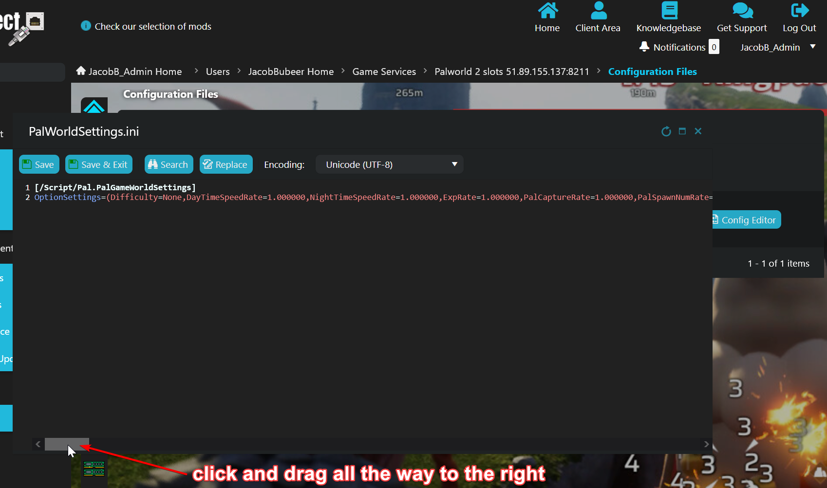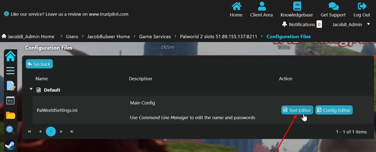 - Click "Text Editor" next to PalWorldSettings.ini