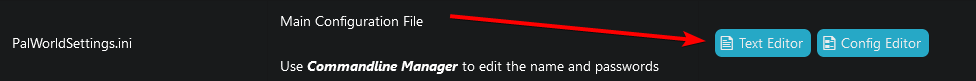 - Locate "PalWorldSettings.ini" & click "Text Editor"