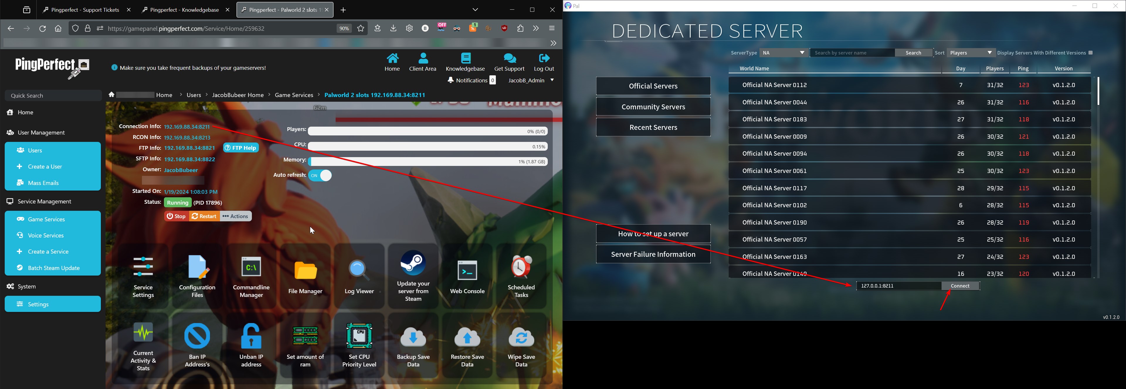 Direct connect by typing your server's "connection info" into the text field at the bottom of the screen - as shown in the attachment below.