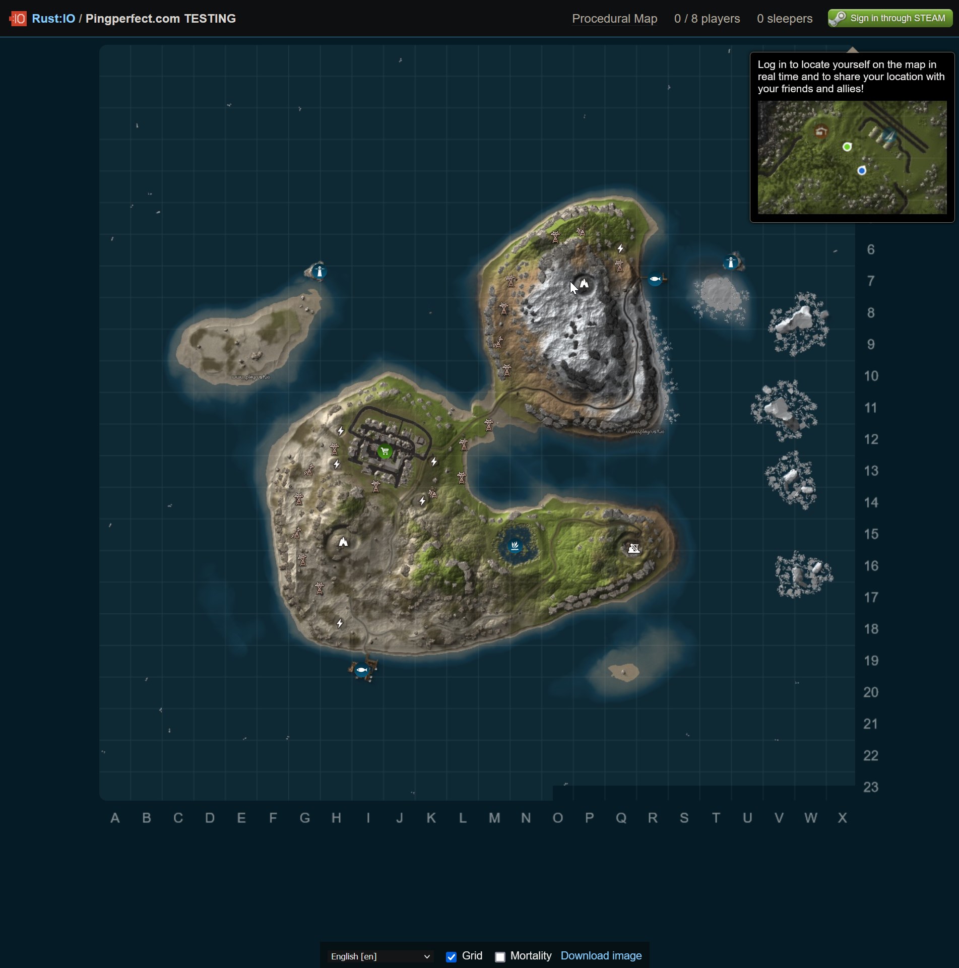 To view the livemap, simply click the "RUST.io Livemap" button in your game panel. A new window will open with the livemap displayed, like this: