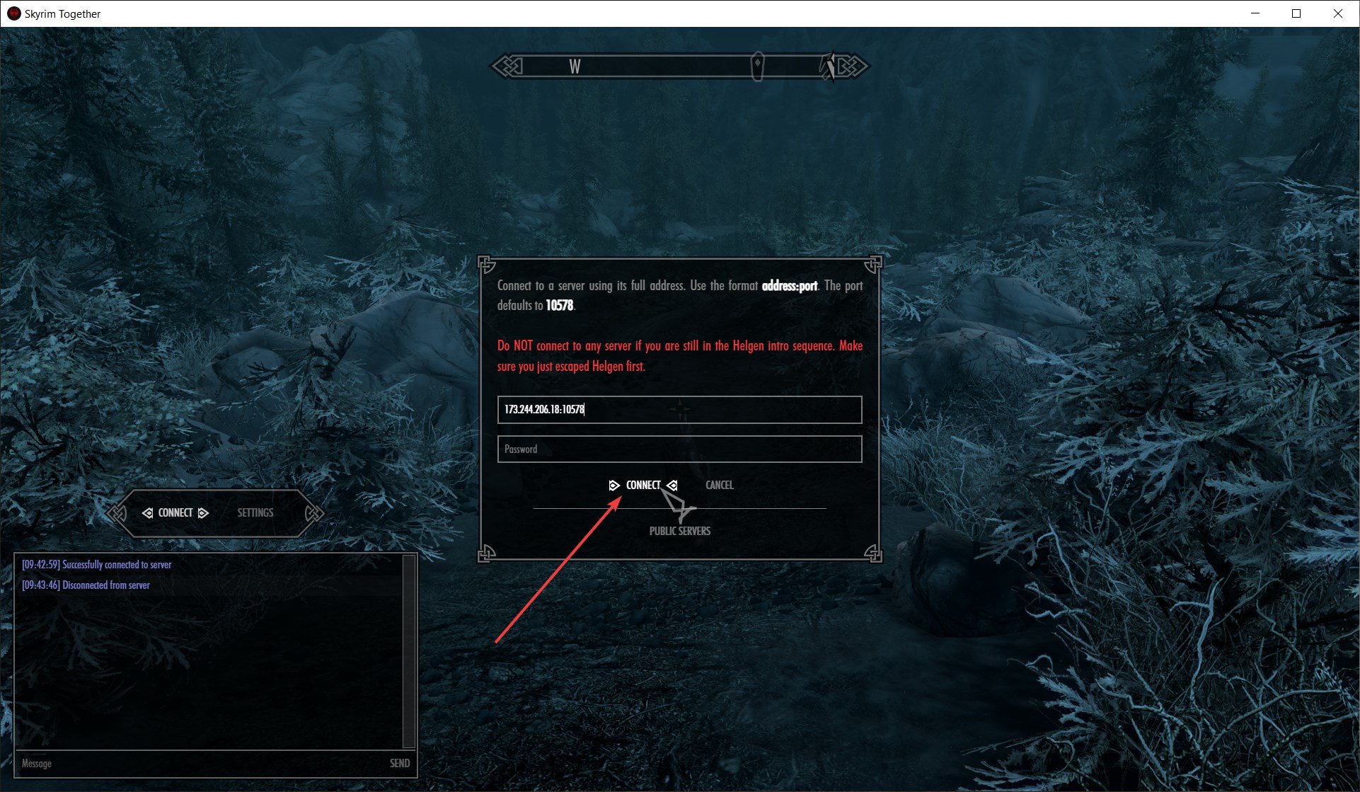 Enter the IP:Port (Found as Connection Info in your game panel earlier) into the "Address" field.