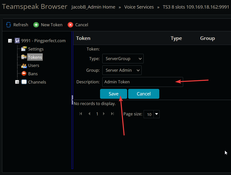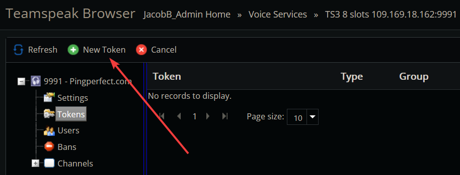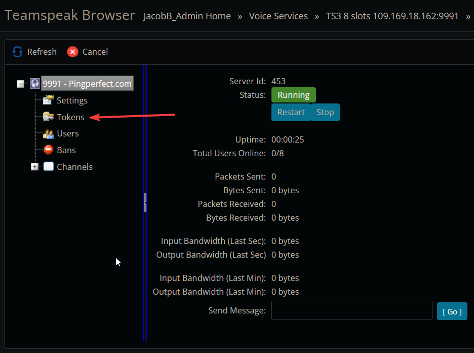 Launch the TS3 client and connect to your server as a normal user. Now, go to Permissions → Use Token and paste the Token ID into the box. If successful, this will make you a Server Admin and you should see a "SA" icon next to your name.