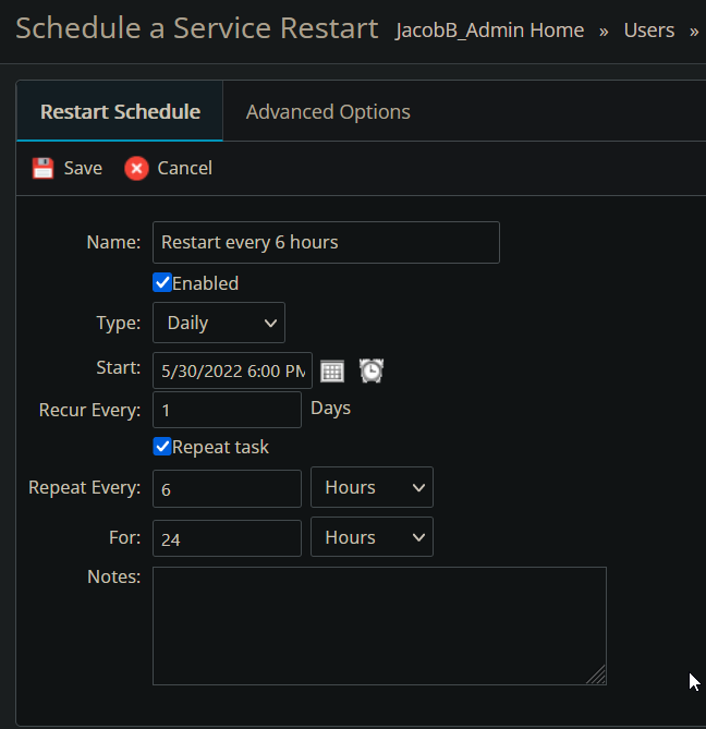 - Select repeat every (your chosen amount of time, in this case 6 hours) hours.