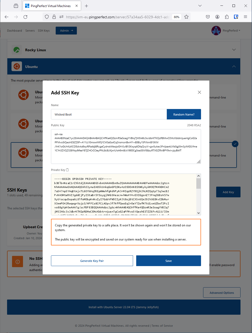 You will now see the new Key available to add to the install. Select the Key as seen below and click on Install with Ubuntu Server 22.04 LTS and then Install Now on the Popup window.