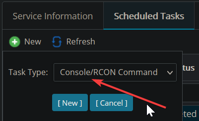 - Select "Console/RCon Command" as the task type and press "New"